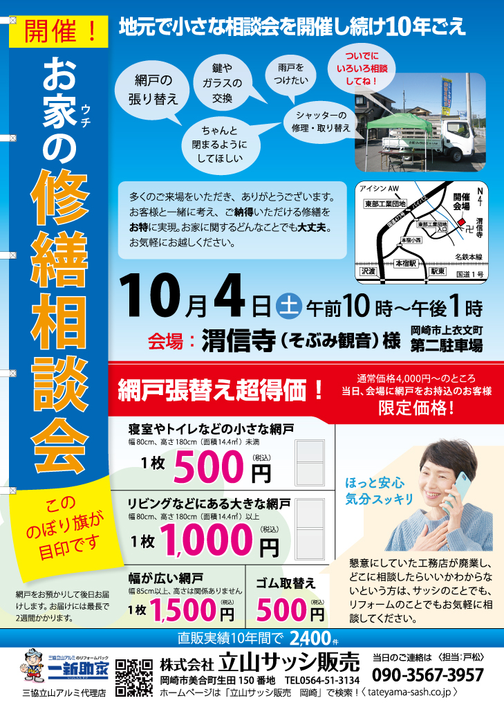 相談会 2025年10月4日(土)岡崎市上衣文町