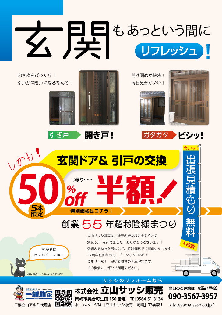 玄関ドア&引戸の交換を5本限定50%オフ